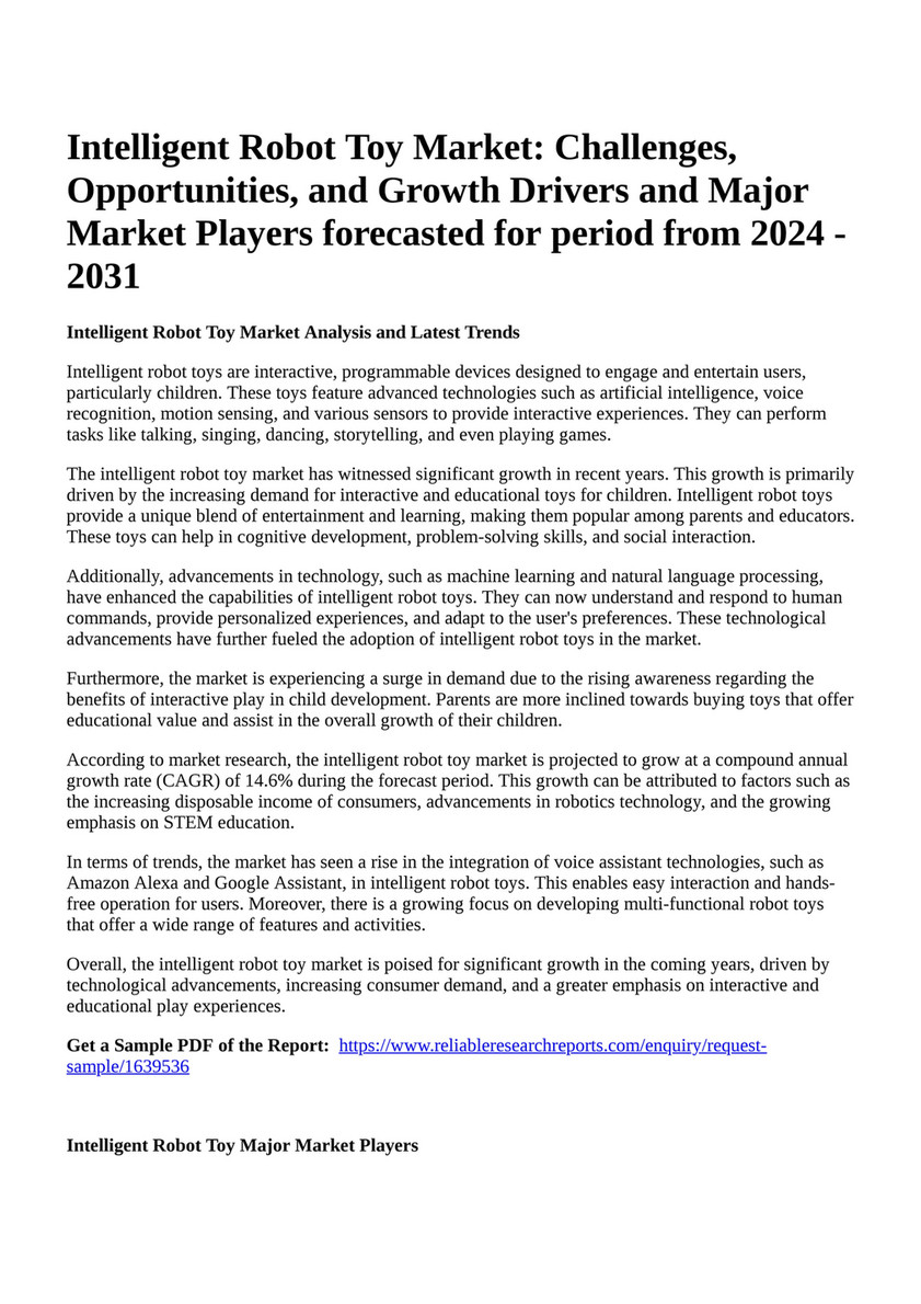 Source : www.lightspeedhq.comReportprime Intelligent Robot Toy Market: Challenges